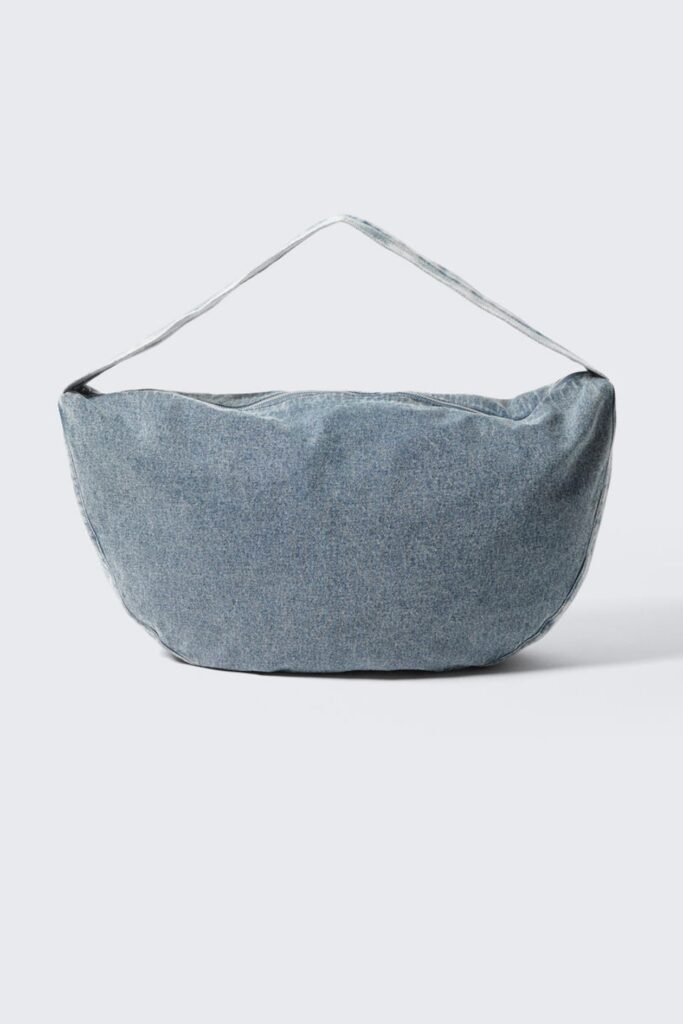 Black hiker-style boots sound like winter, but paired with light fabrics and softened tones, they add grounding. The look is tied together with a slouchy indigo bag that sits against the shirt and breaks up the earthy palette just enough.