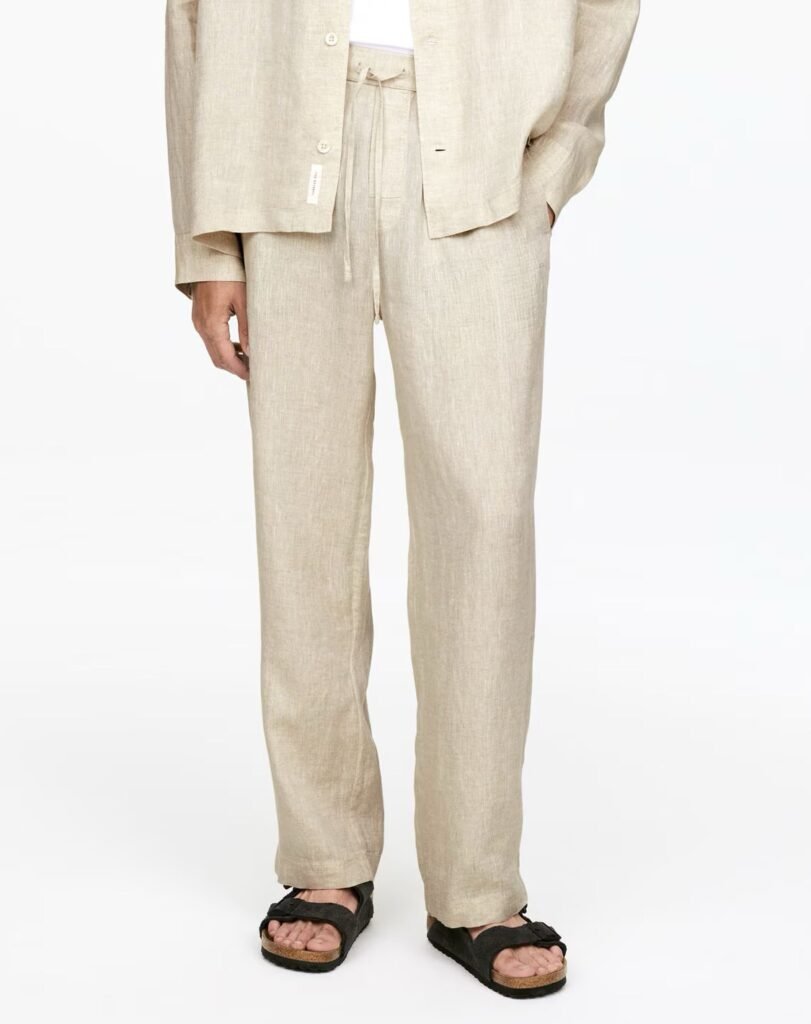 Some summer outfits men put together are purely functional—this one adds quiet confidence. At its core, it’s a relaxed fit that doesn’t try too hard. A slightly cropped white tee keeps it sharp but breathable, falling just at the waistline of the drawstring linen trousers. The trousers are wide without feeling shapeless, giving you room to breathe and move. On your feet: a pair of Paraboot Micheals in velours brown suede. They bring a bit of a rustic feel that still feels elevated. Top it all off with tortoiseshell Wayfarers to keep things timeless.