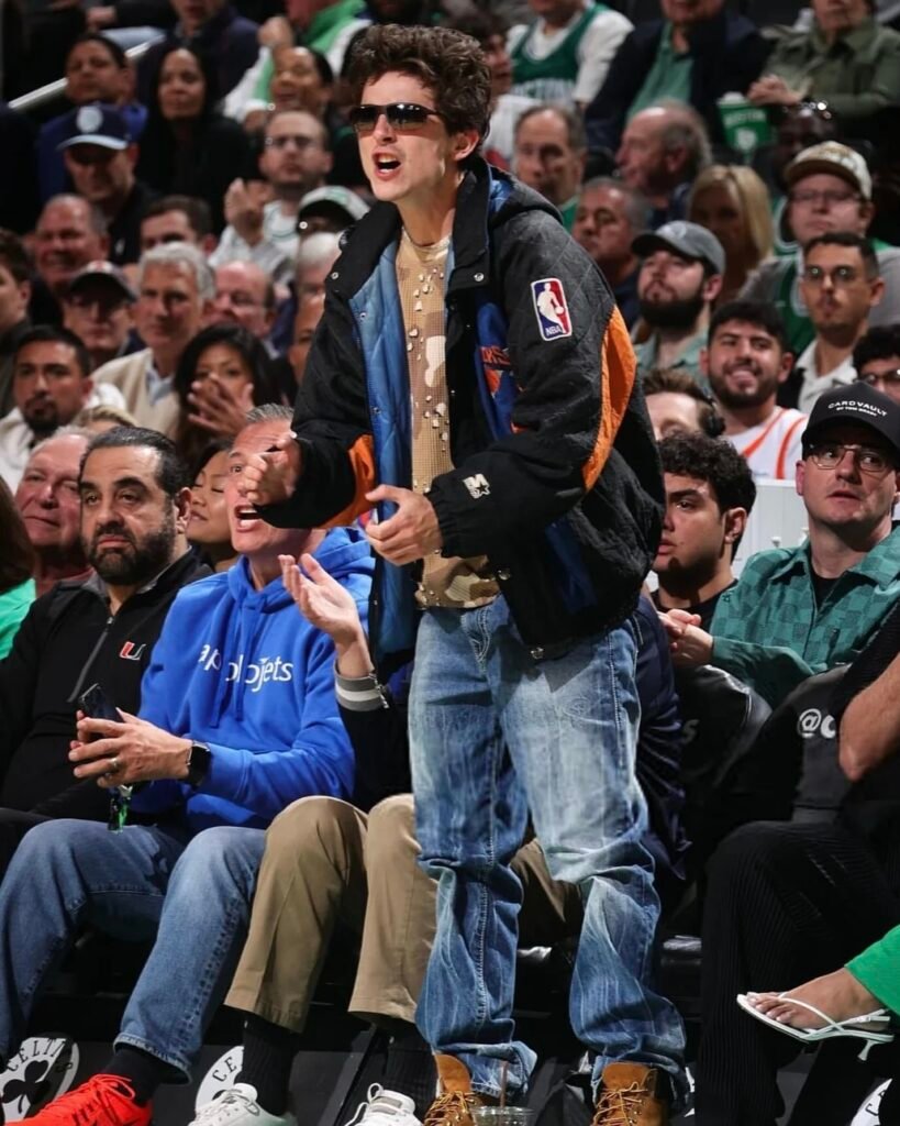 Timothée Chalamet hasn’t just been watching basketball lately — Timothée Chalamet has been dressing for it. If you’ve caught any of his recent courtside appearances at Madison Square Garden, you already know: this isn’t standard celeb fan wear. These fits go beyond just throwing on a team hoodie. They’re chaotic, unpredictable, and somehow still feel completely effortless.